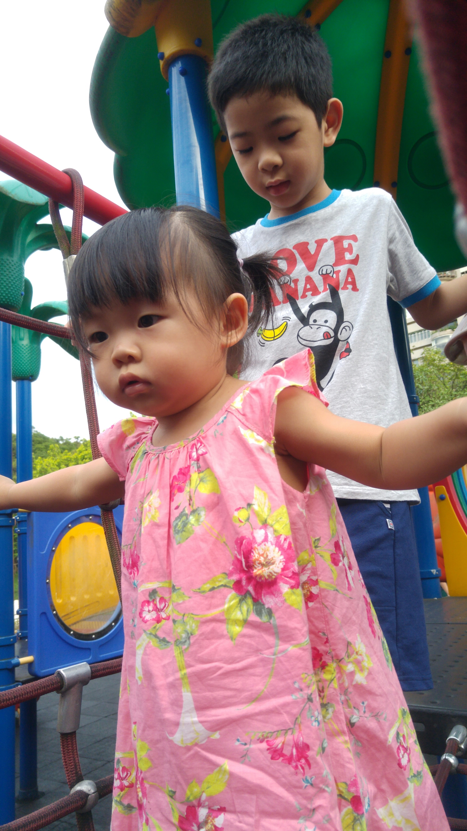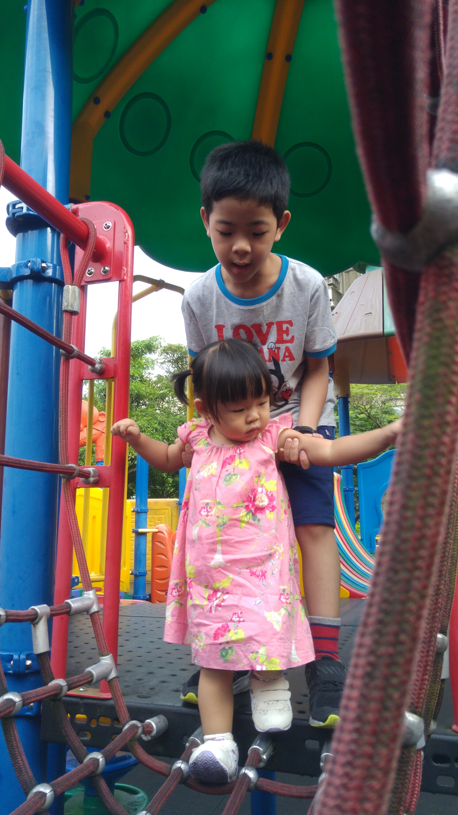 瀚瀚今天很照顧妹妹唷!