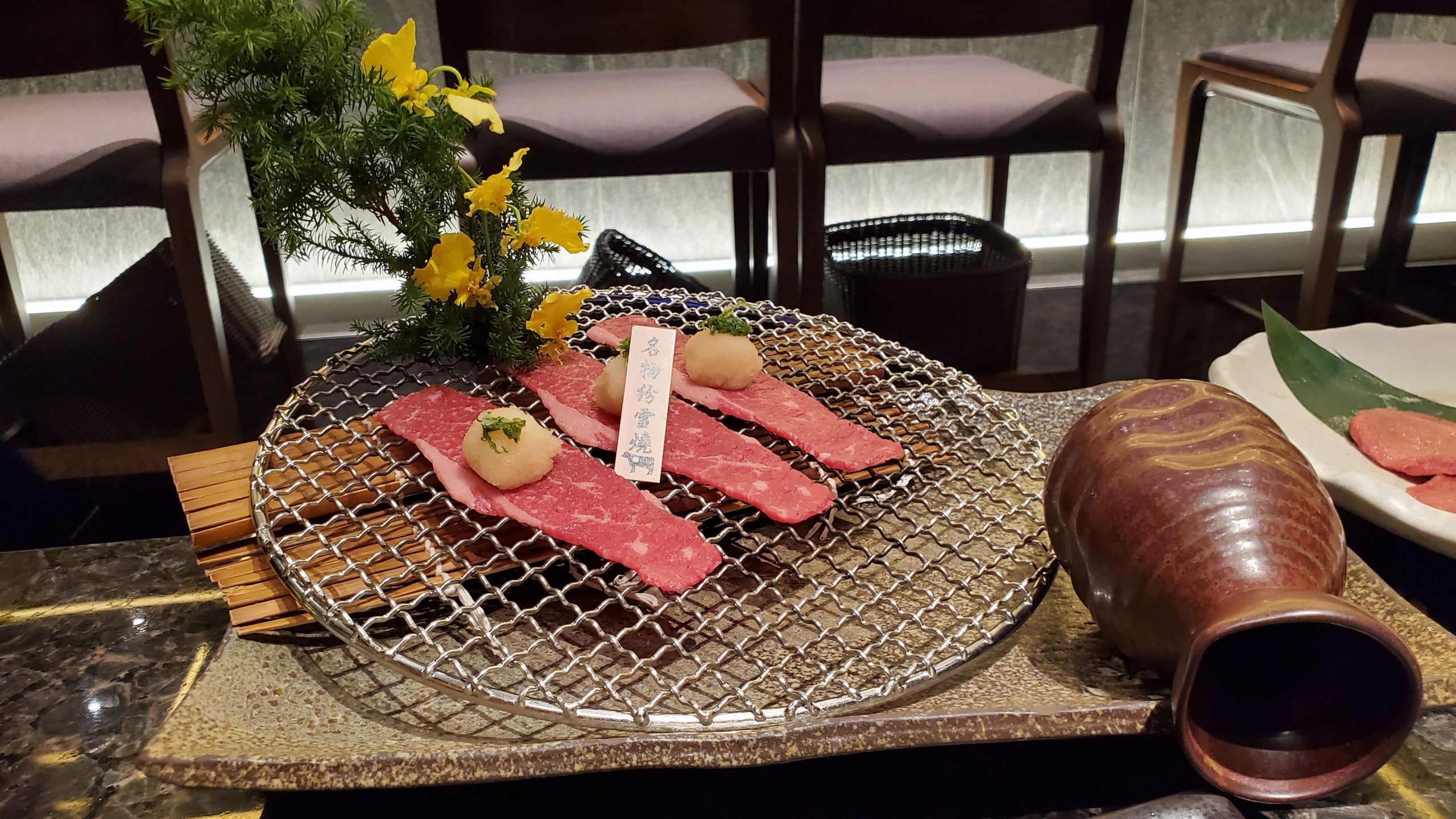 下課後,跟媽媽她們約在老幹杯吃燒烤,第一次吃和牛,不知道每樣都只有一片,所以除了加點的部分外,其它的都只有三片,只能大家分著吃。和牛吃起來口感是還不錯,肉質軟嫩偏油,但吃起來沒有到非常驚豔。