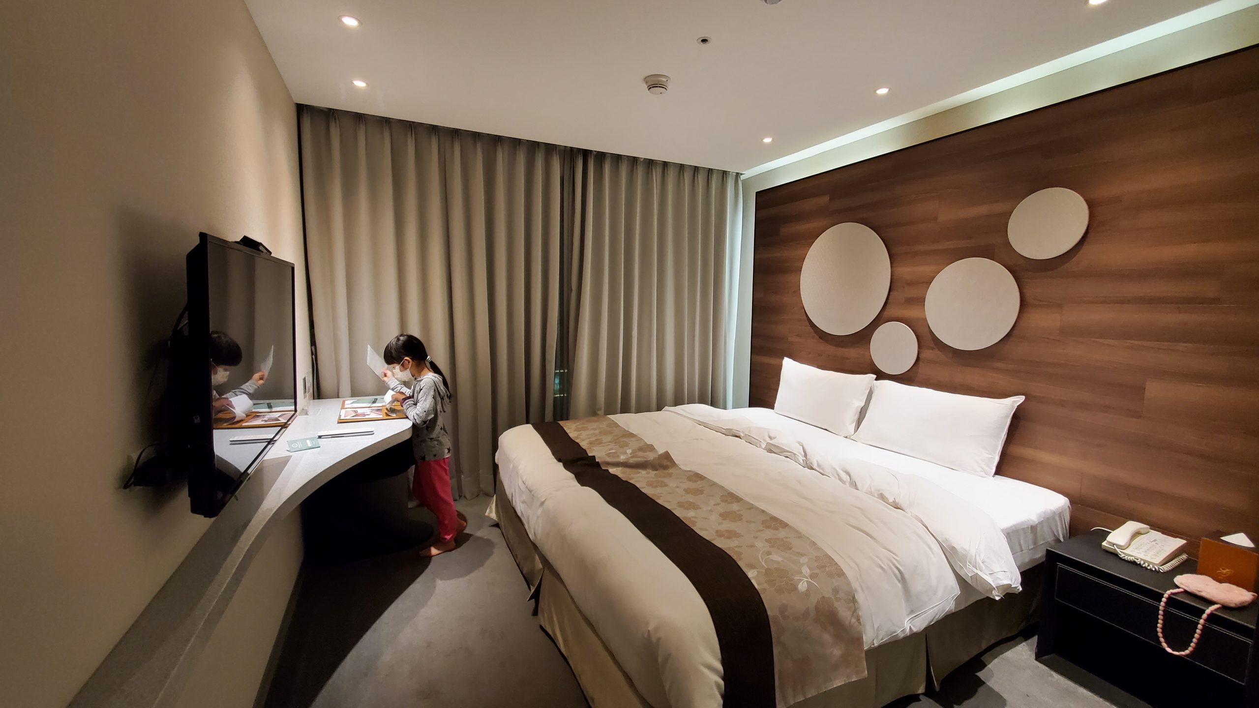 晚上在路口的洛基飯店check in 後,先回家拿盥洗用具,爸爸跟妹妹再返回飯店入住。第一次住的離家這麼近。😅