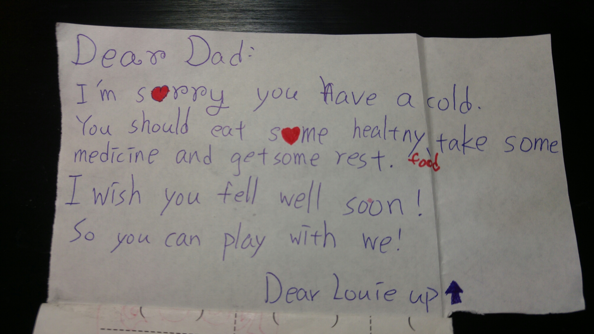 爸爸得了A流,要隔離一週,所以瀚瀚就做了卡片送給爸爸。
